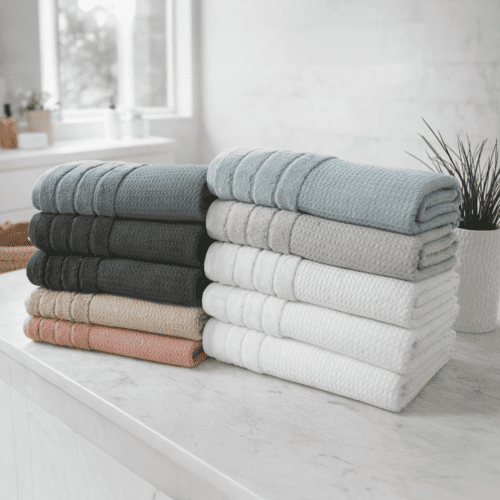 סדרת מגבות דגם וופל 500 גרם למ"ר עשויה 100% כותנה zero twist