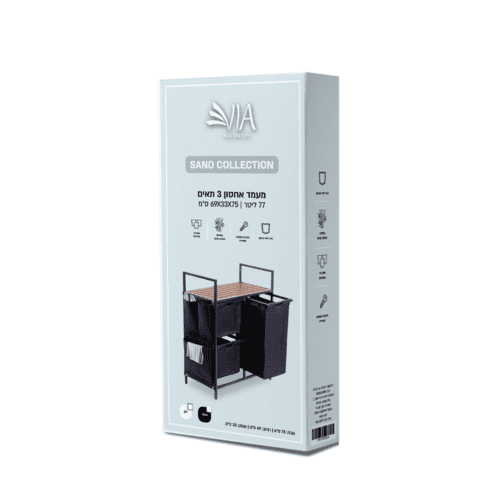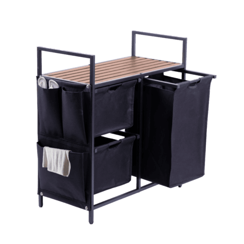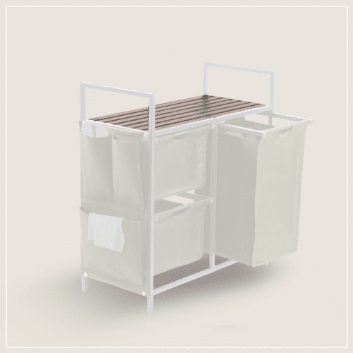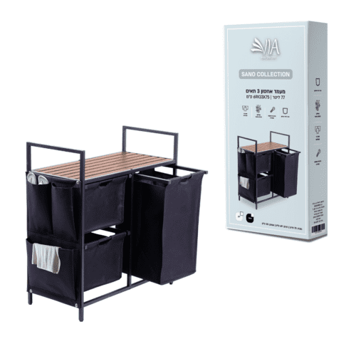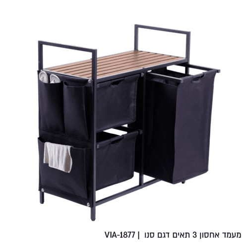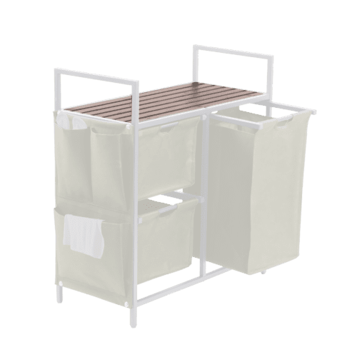 מעמד אחסון 3 תאים מבמבוק עם סלי בד נשלפים