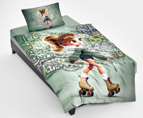 מערכת מצעים יוקרתית עשויה 100% סאטן אל קמט בהדפסים מיוחדים אופנתיים לילדות