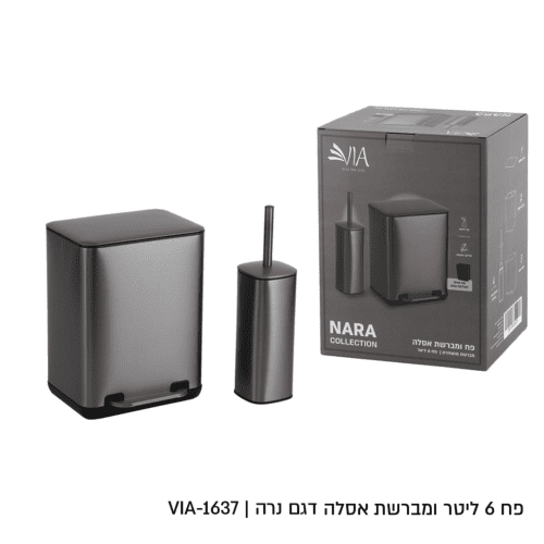 פח 6 ליטר+מברשת אפור מתכת דגם נארה