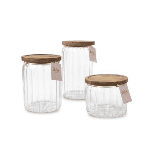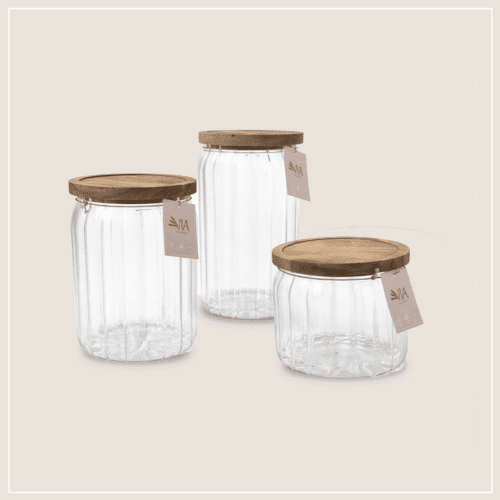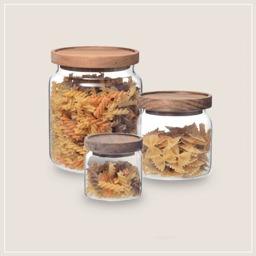 צנצנות אחסון זכוכית מכסה עץ אקשיה
