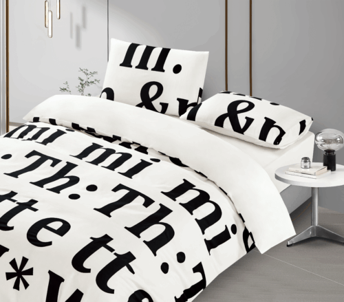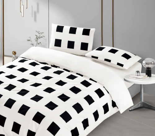 מערכת מצעים יוקרתית עשויה 100% כותנה בהדפס בצבעי שחור לבן.